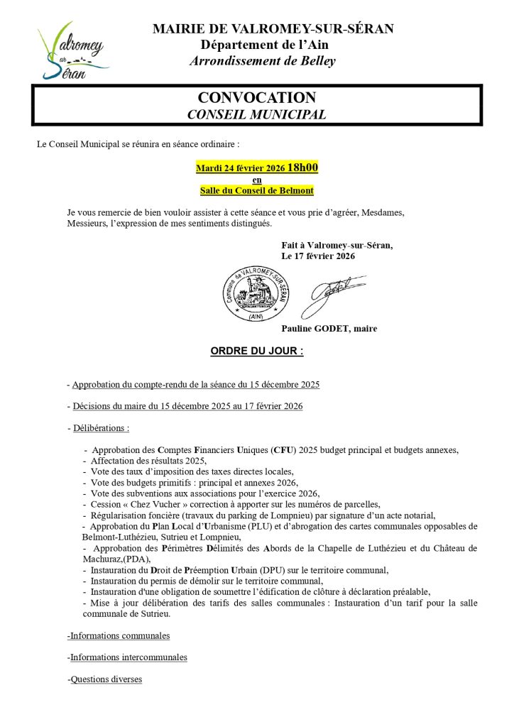 Convocation au prochain conseil municipal