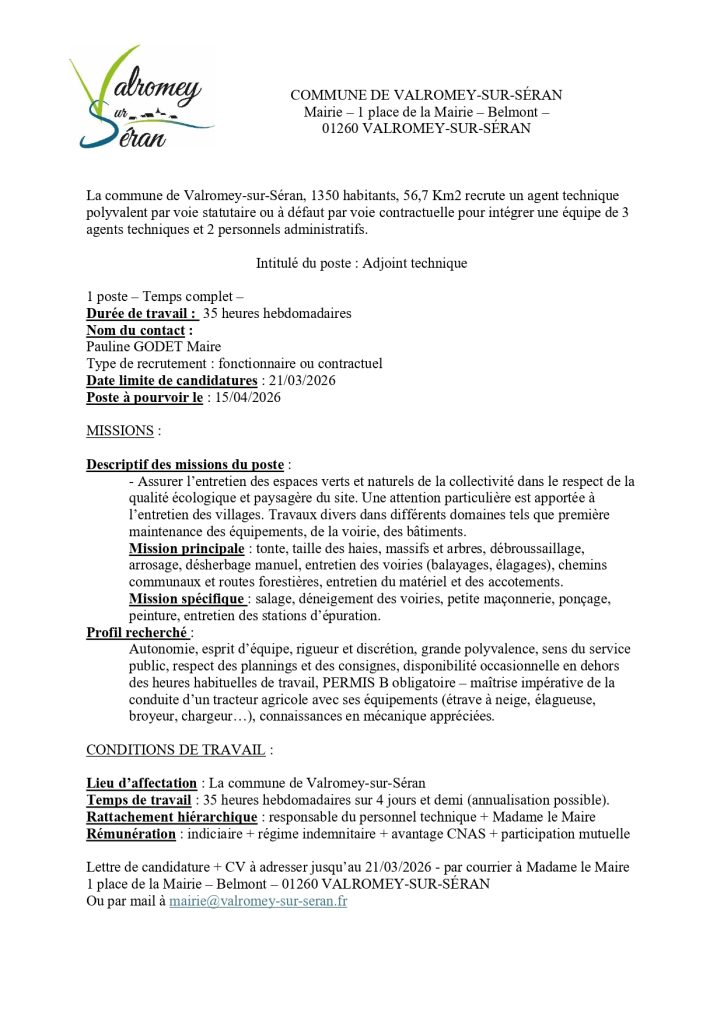 Fiche poste recrutement agent technique